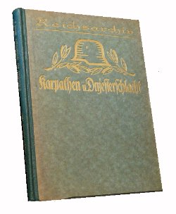 Fehldruck beim Frontcover: bei diesem Band 1 der 2.Auflage fehlt der Aufdruck Reichsarchiv. Hier ist der Helm etwas zu hoch gerutscht, so das beim Druck der Schriftzug wohl wegblieb. Dieser Fehler taucht bei verschiedenen Bänden mal hier und da auf. |