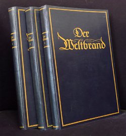 b0023 Der Weltbrand, Band 1-3Illustrierte Geschichte aus großer Zeit mit zusammenhängendem Text von Paul Schreckenbach Verlag von J.J.Weber in Leipzig, 1919-1920 B 23cm / H 32 cm / D 2,0 cm; | |